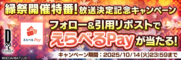 「D2メガテン公式生放送 ~縁祭開催特番!~」の放送が10月14日に決定いたしました!